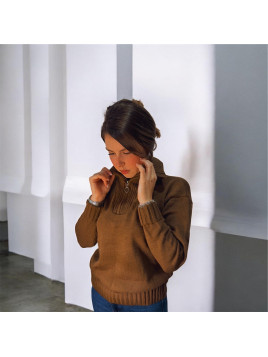 Jersey marrón de cuello con cremallera.